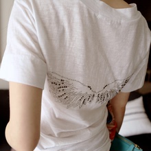 鬼鬼家韩国代购 天使的翅膀 钟爱V领洋气背部水钻镶嵌短袖T恤
