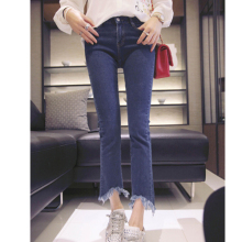 鬼鬼家韩国代购 Look 裤型显瘦 时尚裤脚流苏边百搭做旧牛仔裤