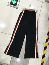 实拍2017春季新款彩色条纹撞色微喇叭裤女修身显瘦英伦风针织女裤