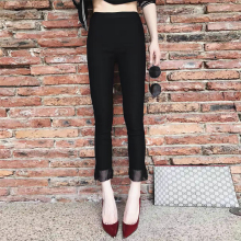 欧洲站条纹打底裤侧边九分裤修身欧货黑色紧身裤子女2017春装新款