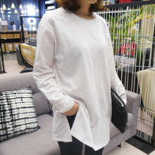 现货韩国东大门代购女装2017夏装新款宽松中长款开叉打底衫T恤se