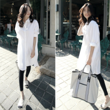 现货韩国东大门代购女装2017春装新款宽松中长款时尚长袖衬衫qr