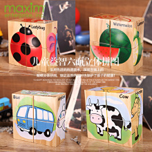 MAXIM 4pcs积木拼图 六面拼图 农场 交通 水果 昆虫款 益智玩具