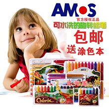 包邮韩国进口AMOS高档旋转蜡笔儿童无毒可水洗画笔油画棒安全画笔