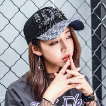 2017新款帽子女士夏天韩版潮人鸭舌帽时尚流苏亮片休闲百搭棒球帽