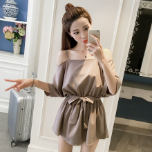 2017夏装新款韩版时尚性感一字领吊带露肩五分袖系带收腰连衣裙女