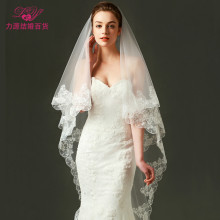 力源新款韩式结婚新娘奢华蕾丝花边头纱高档拖尾婚纱礼服配饰3米