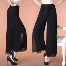 2017春夏新款雪纺阔腿女裤中老年休闲裤妈妈裤高腰大码裤裙九分裤