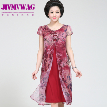 中老年女装夏装短袖连衣裙2017新款40-50岁妈妈装春装假两件套装