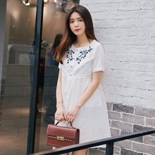 2017新款孕妇夏装短袖纯棉连衣裙文艺宽松刺绣上衣中长款大码休闲