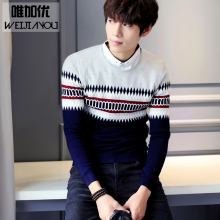 2016冬季新款男士毛衣套头圆领针织衫潮男条纹毛线衣宽松外套男装