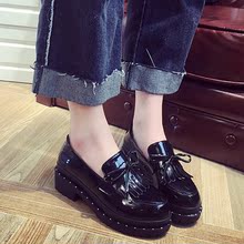 2017春季新款英伦风漆皮女鞋蝴蝶结厚底粗跟单鞋女学生流苏小皮鞋