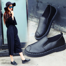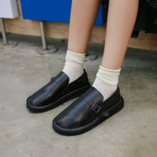 韩国小皮鞋2016早秋极光鞋学院风复古圆头单鞋套脚鞋加棉皮平底鞋