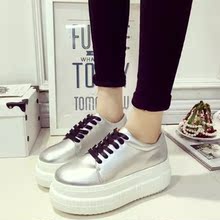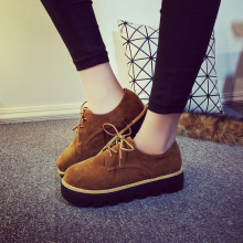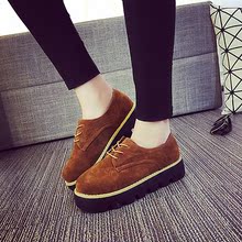 2016韩版厚底松糕英伦风圆头松糕底原宿风平底低帮系带单鞋女鞋潮