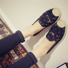 韩版春夏透气时尚网纱女鞋平底百搭休闲痳编蕾丝渔夫鞋潮女单鞋子