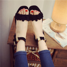 2017新款百搭凉鞋女夏平底韩国学生潮简约平跟韩版厚底扣带罗马鞋