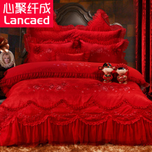 大红婚庆四件套结婚六件套红色纯棉蕾丝八十件套床品 一见钟情