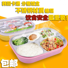 韩国不锈钢小学生方形卡通保温饭盒儿童三分格多格分隔餐盘便当盒