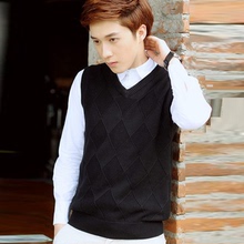 秋冬男士V领毛背心无袖毛衣背心纯色毛线马甲潮男针织衫马夹坎肩
