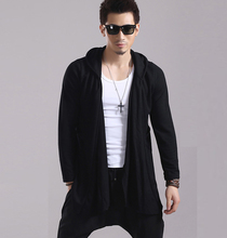 春夏季韩版男士薄款针织衫外套长袖连帽衫潮流男装中长款开衫披风