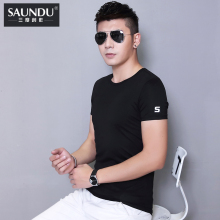 夏季衣服男士短袖t恤圆领纯色黑色修身打底衫男夏装半袖简约体恤