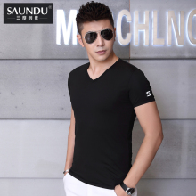 夏季短袖t恤男纯色V领黑色修身打底衫夏天上衣服半袖简约大码体恤