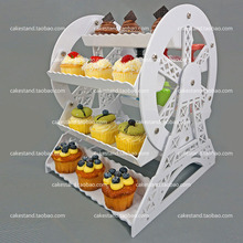 法式摩天轮蛋糕架巴黎铁塔摩天轮杯子蛋糕架白色典雅婚庆 可旋转
