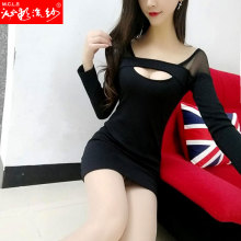 夜店女装春2017性感连衣裙包臀修身超短裙透视低胸露胸紧身打底裙
