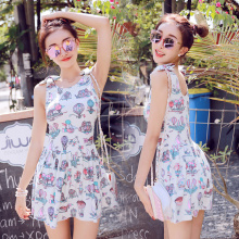 亦美珊泳衣女保守 连体遮肚裙式小胸聚拢韩国印花显瘦学生游泳衣