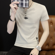 夏季男士短袖T恤2017新款韩版个性刺绣V领夏装修身潮流青年衣服男