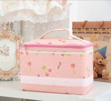 款粉黛佳人化妆包 樱桃粉红蕾丝软盖无纺布整理收纳包