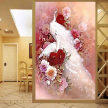 异形钻新款圆钻5D钻石画客厅大幅孔雀图钻石十字绣砖石秀玄关竖版