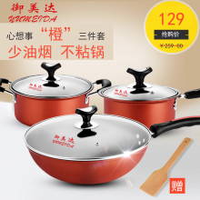 御美达 厨房锅具套装组合炒锅三件套锅组套装汤锅 燃气电磁炉通用