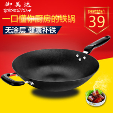 御美达 平底铸铁炒锅铁锅无涂层传统生铁老式锅具 燃气电磁炉通用