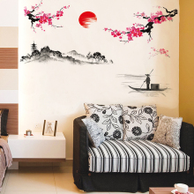 中国风山水画水墨墙贴纸客厅卧室沙发电视背景墙装饰中式特价包邮