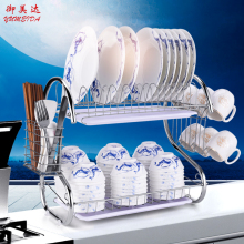 御美达 厨房用品收纳架碗碟架金属放碗架沥水架家用2层厨房置物架