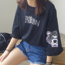 夏季短袖t恤女宽松韩版学生bf潮体恤七分袖老虎头印花半袖打底衫