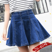 松紧腰牛仔裙大码半身裙女夏防走光小清新短裙胖MM高腰百褶蓬蓬裙