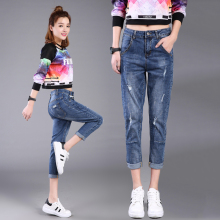 2016秋季新款韩版显瘦牛仔裤胖MM大码松紧腰女裤宽松小脚裤长裤子