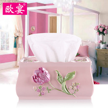 欧宴 纸巾盒欧式树脂抽纸盒时尚创意纸抽盒家用田园玫瑰纸巾筒