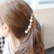 包邮韩国人造珍珠香蕉夹大小号竖夹发夹韩版马尾夹小抓夹发饰品女
