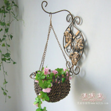 欧式铁艺 壁挂花架花篮/装饰花盆吊篮 客厅藤编花篮(送玫瑰藤)