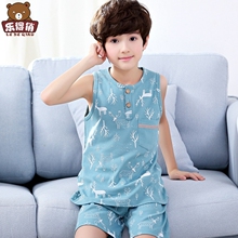 夏季男童睡衣纯棉中大童儿童睡衣男孩小孩宝宝家居服背心套装薄款