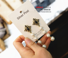 欧式长款夸张耳坠女老二家韩国代购珍珠串珠黑钻气质型耳钉爆款潮
