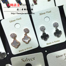 老二家韩国代购 爆款 微镶钻四叶草日韩耳钉女 耳环韩国饰品 银针