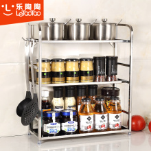 乐陶陶 厨房置物架不锈钢收纳架调味调料架储物架2层厨房用品落地