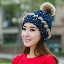 帽子女冬天新款韩版时尚兔毛边混纺针织毛线帽手工帽护耳帽 潮
