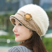 帽子女冬天 韩版兔毛帽 纯色鸭舌贝雷帽保暖针织毛线帽秋冬季时尚