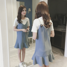 2017春装新款韩版修身中长款背心吊带打底裙荷叶边两件套连衣裙女