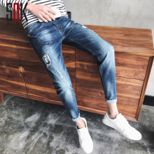 牛仔裤男九分裤男士破洞小脚裤2017夏季薄款修身韩版潮流9分男裤